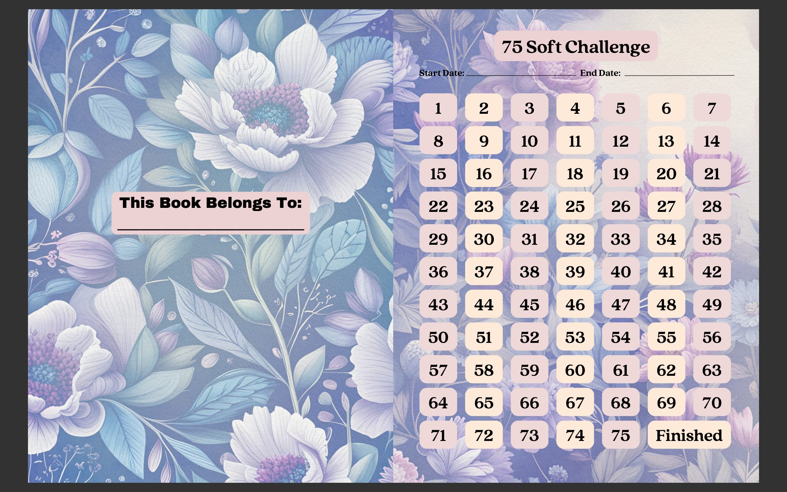 What are the rules of the 75 day Soft Challenge? Eat well, incorporating more nutritious foods into your diet, and only drink on social occasions. Train for 45 minutes everyday for 75 days. One day a week is to be active recovery. Drink three litres of water a day. These small changes can make a HUGE difference in your health and this tracker will help you stay on track.